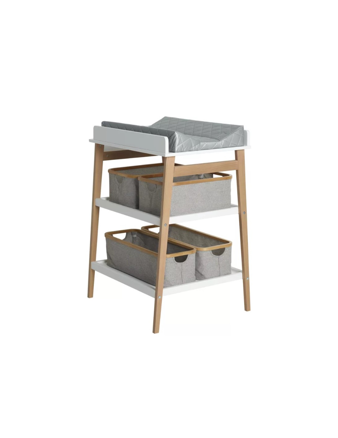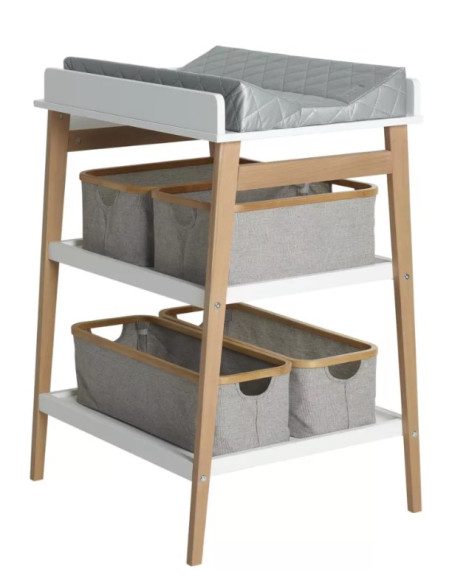 La marque propose des petits paniers de rangement pour compléter au mieux votre table à langer HIP, ainsi que des coussins à langer (non-inclus).