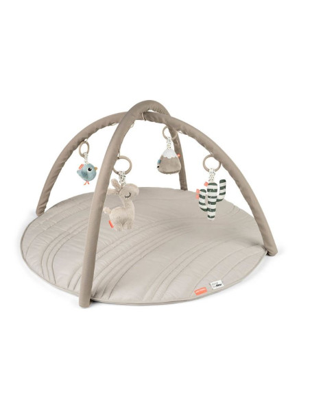 Tapis d'activité avec 4 jouets (Lalee, cactus, oiseau,...) que l'on peut placer à 13 places différentes.