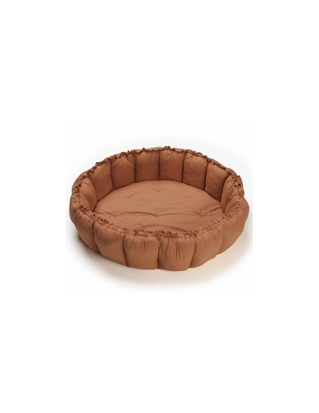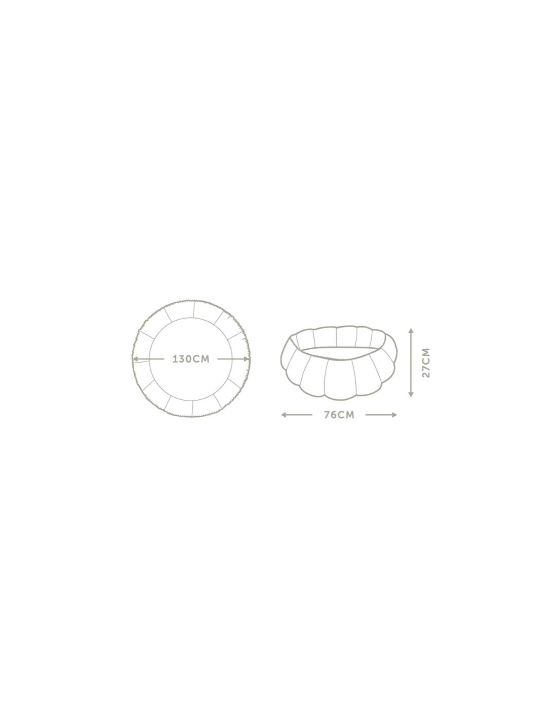 Composition :100% coton organique. Dimensions du tapis de jeux : L. 130 x l. 130 cm Dimensions de l'aire de jeux : L. 76 x l. 76 x H. 27 cm