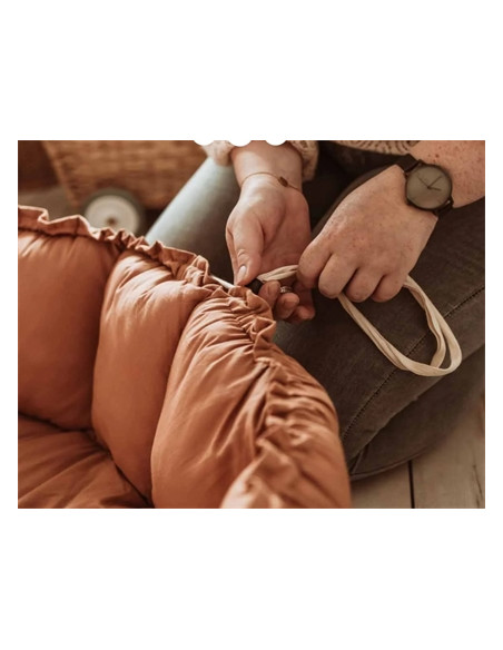 Simple d'utilisation, pour passer du mode tapis de jeux au mode aire de jeux, il suffira de soulever les pétales en tirant doucement sur les cordes puis de placer ces dernières à l'intérieur de la poche.