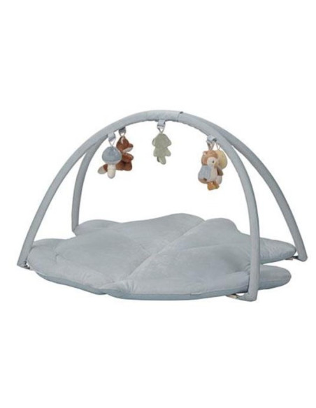 D'un bleu tendre, il comporte deux arches en velours côtelé dans lesquelles sont suspendues cinq peluches différentes de la collection Forest Friends. Le petit renard, le hibou sage, le champignon jaune et bleu et la feuille aideront à développer les capacités sensorielles et la coordination œil-main.
