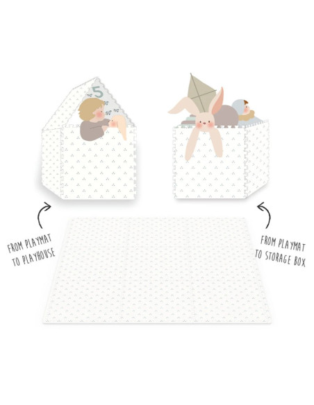 Doublement imprimé, doublement amusant : ces tapis sont imprimés des deux côtés et présentent un design qui encourage le jeu imaginaire. Retournez le tapis de jeu pour orner votre intérieur de jolis motifs en terrazzo. Et lorsque la récréation est terminée, vous pouvez facilement transformer le tapis de jeu en boîte de rangement pour jouets et ranger tous les jouets à l'intérieur. Vous pouvez même créer une maison de jeu, un château ou une supérette ! N'est-ce pas amusant ?