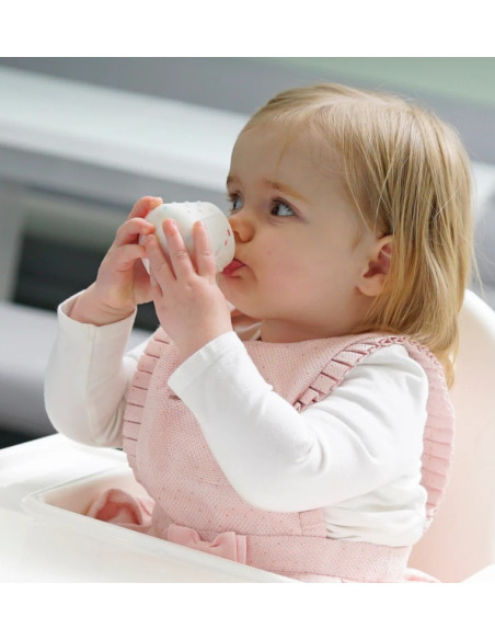 · Les points sensoriels texturés sur l'extérieur de la tasse aident les bébés à l'agripper, même lorsque leurs mains sont mouillées.