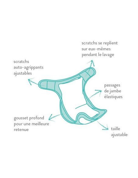 La couche s’adapte facilement, c’est-à-dire qu’elle peut être pliée de plusieurs façons, afin de convenir à toutes les tailles et morphologies.