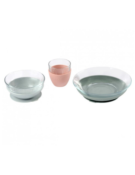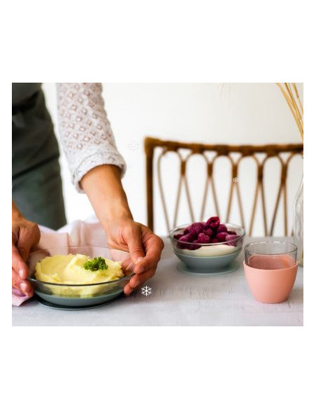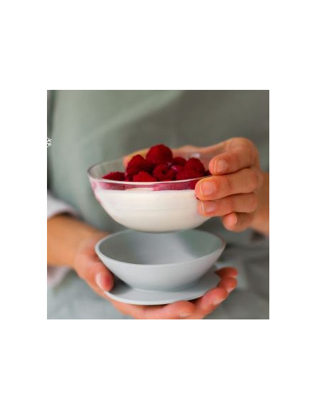 Un coffret repas sain pour bébé : en verre trempé Duralex haute qualité. L'assiette et le bol ont une base souple avec ventouse pour adhérer et réduire les risques.