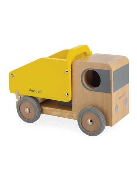 Le camion benne est composé d'une benne basculante afin de déposer le contenu sur le chantier. Il est aussi équipé de roues silencieuses en caoutchouc.