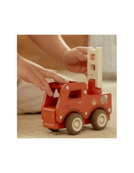Avec ce camion de pompier en bois, vous êtes toujours prêt à intervenir.