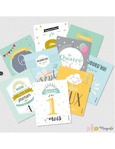 Un kit de 12 cartes de 1mois à 1an pour immortaliser les premiers mois de bébé...