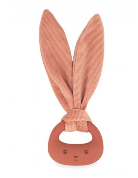 Soulagez les poussées dentaires de bébé avec anneau de dentition lapin en silicone couleur terracotta.