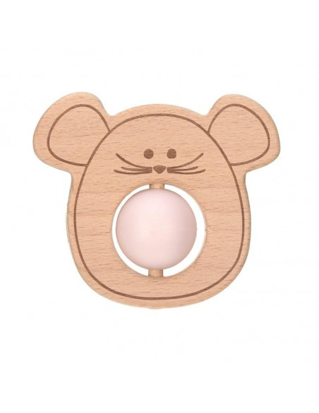 Anneau de dentition en bois et sillicone, en forme de souris, de la marque Laessig.