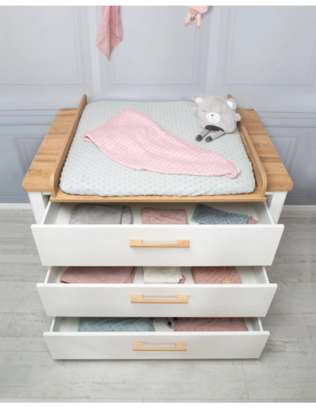 Le commode à langer extra profonde avec accessoire à langer amovible 'Ava' a une hauteur à langer confortable (90,5 cm), avec des dimensions HxL: 100 x 119 cm, profondeur avec / sans accessoire à langer: 76/54 cm.