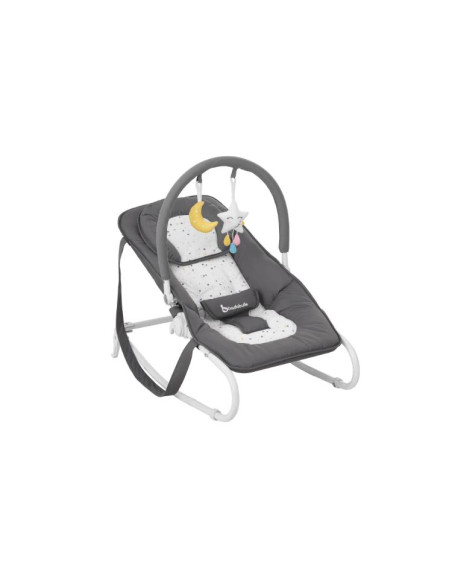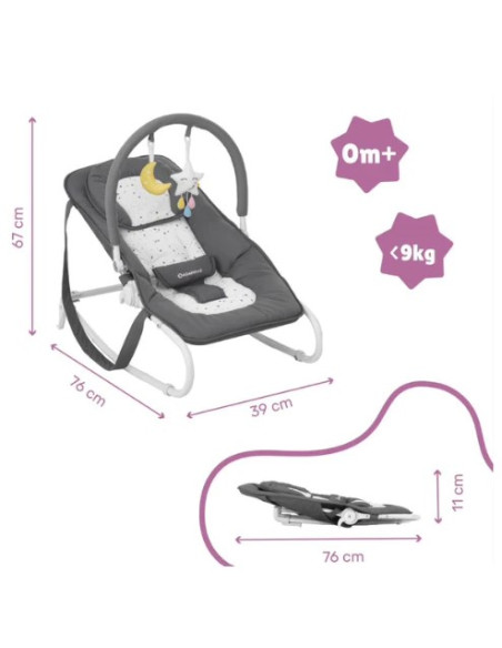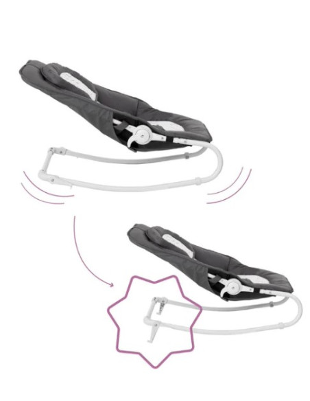 Au choix, vous utilisez le transat Easy pour bébé en mode fixe ou balancelle. Les pieds se relèvent à l'arrière pour qu'un doux balancement soit possible. Idéal pour l'éveil de votre bébé, l'arche de jeux s'incline pour être facilement accessible.