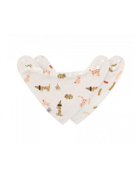 Les bandanas sont munis de deux boutons pression pour un confort de port individuel en fonction du tour de cou de l’enfant et pour faciliter la fixation et le retrait.