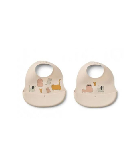 Lot de 2 bavoirs en silicone Ember - Cats and Dogs/Sandy