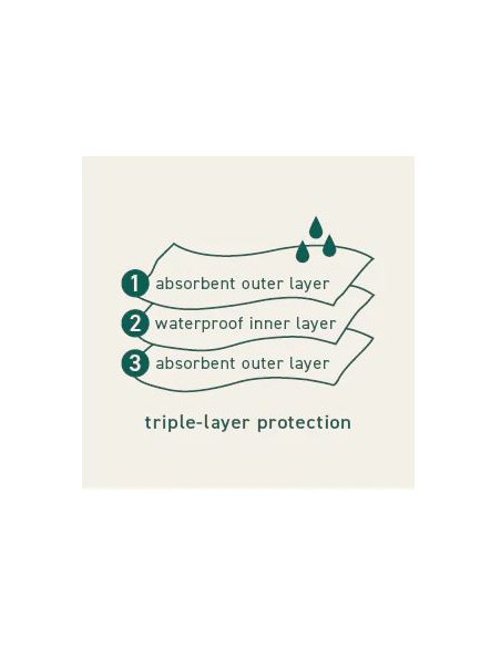 1 face absorbante, 1 couche intérieure imperméable qui protège les vêtements de bébé, plus une face absorbante.