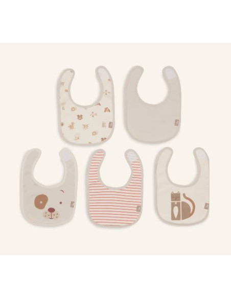 Lot de 5 bavoirs imperméables avec fermeture velcro.