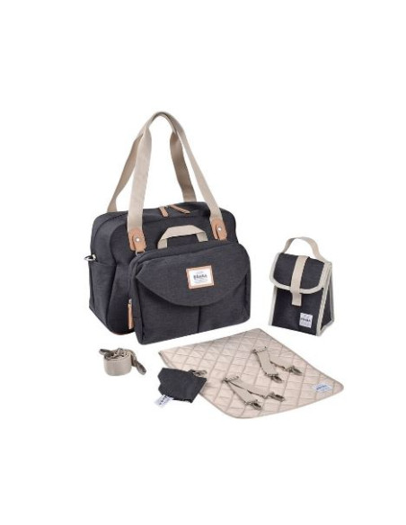 Accessoires : Livré avec pochette repas isotherme, trousse de rangement et protection pour sucettes, matelas à langer amovible.