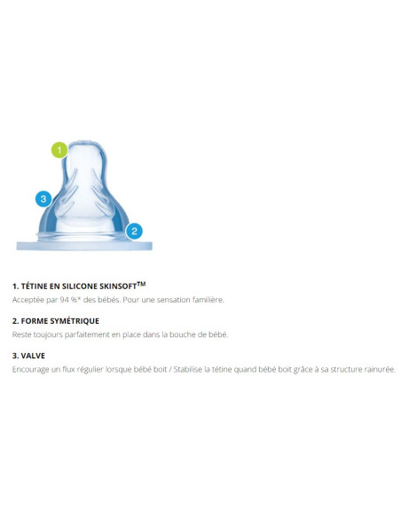 La tétine MAM et sa surface SkinSoft en silicone font du biberon une expérience familière pour les bébés.