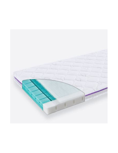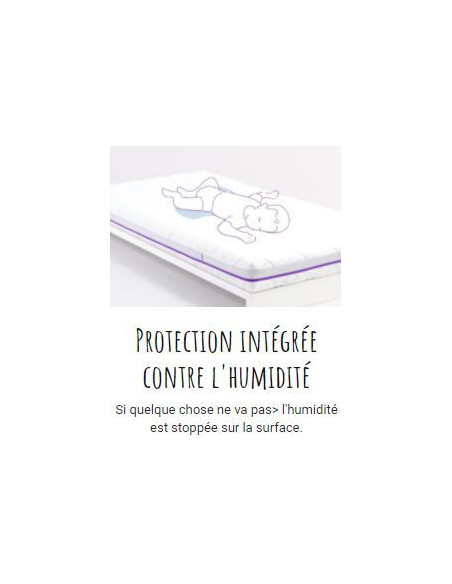 Ce matelas en mousse Cell Pur améliorée au Tencel et certifiée TUV (sans émanations toxiques) contient des pads 3D ronds pour un meilleur confort et soutien du dos. Avec une face adaptée pour les nouveaux nés et une face pour les enfants de plus de 12 mois. Un coussin d'air 3D coté bébé pour encore plus de sécurité. Contribution recyclage incluse.