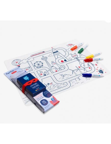 Ce set se plie facilement et s’emporte partout, il suivra votre petit artiste pour tous ses repas ou dans certaines salles d’attente interminables ! Grâce à ses 5 feutres lavables aux encres non toxiques, les enfants pourront colorier à l’infini leurs animaux préférés !