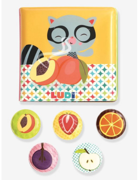 Cinq petites vignettes représentant la tranche des fruits accompagnent le livre.