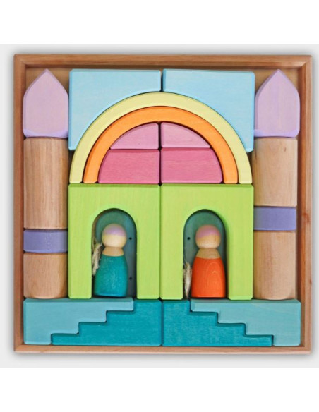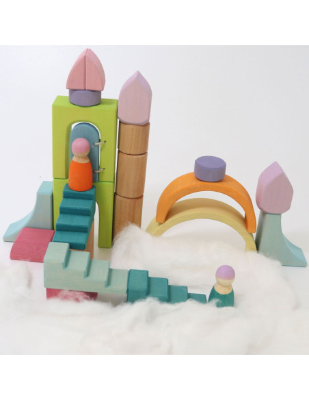 Les tons pastels et aériens du monde de construction Cloud Play confèrent au bois massif une légèreté délicate. Les matériaux de construction se déclinent dans une grande variété de formes permettant une construction libre et imaginative et complètent l'assortiment GRIMM'S avec leurs merveilleux détails, tels que des courbes en forme de fleur, des bords asymétriques et une porte amovible et montable.