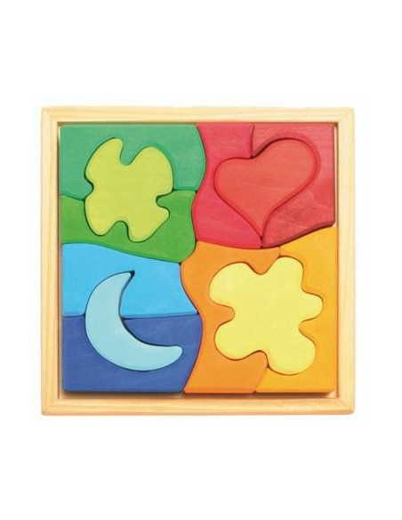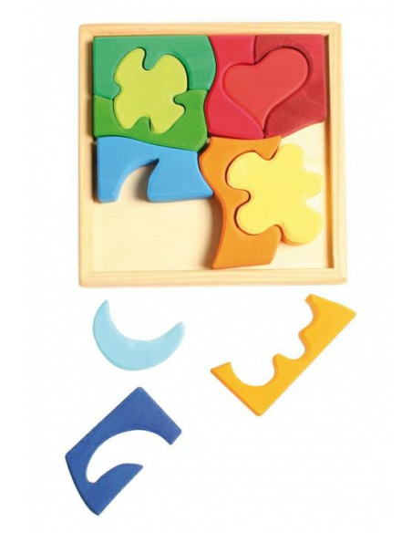Pour les tout-petits, il ne s'agit pas de reconstruire le puzzle, il s'agit plus de découvrir ce qui pourrait être reconstruit ou créé avec les pièces en bois. 12 pièces dans un cadre en bois. A partir de 1 an.