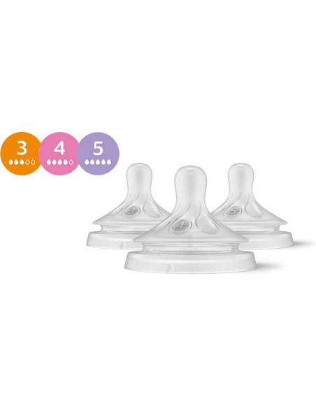 Lot de 3 tétines pour les biberons Avent Natural Response