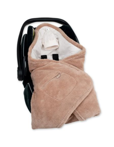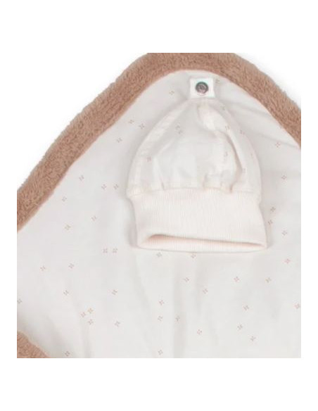 Cube d'activités en 100% coton avec un miroir, un pouêt, du papier froissé, un anneau de dentition, un hochet avec billes, une clochette et des étiquettes.