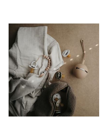 Cet étui à sucette en silicone permet d'emporer avec vous jusqu'à 3 sucettes. Muni d'une sangle pratique pour l'attacher partout.e. Résiste au lave-vaisselle.