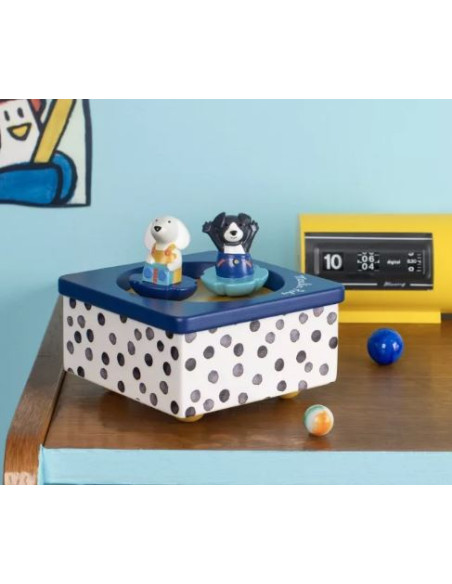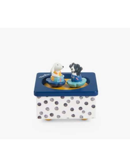Magnifique boîte à musique de la collection "Puce & Pilou" où l'enfant regardera avec émerveillement les 2 personnages danser sur la douce musique.