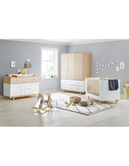 La chambre pour bébé "Boks" contient un lit évolutif, une commode à langer XL et une garde-robe 3 portes !