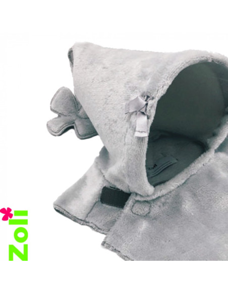 S'ouvre entièrement pour faciliter le passage de la tête de bébé et tient fermé avec un velcro.