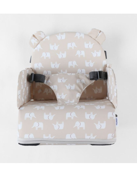 Ce rehausseur, Beige avec imprimé éléphant , permettra à votre enfant d'être assis à bonne hauteur pour vos repas en famille confortablablement. Mais aussi tout en sécurtié grâce aux sangles à clips et au harnais. Il est recouvert d’une matière imperméable, pour faciliter son nettoyage. Pliable et léger, il est facile à transporter durant tous vos déplacements grâce aux sangles pour épaules.