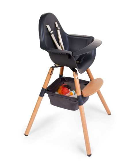 Petit panier de rangement qui se monte sur le cadre métallique sous l'assise de la chaise haute Evolu, Evolu 2 et Evolu ONE.80° de la marque Childhome.