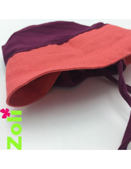 Chapeau soleil Beguin lin - Lie de vin/Corail