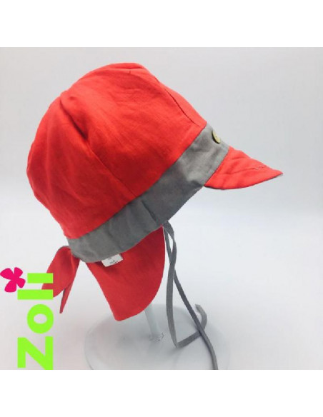 Chapeau soleil évolutif lin - Taupe/Rouge