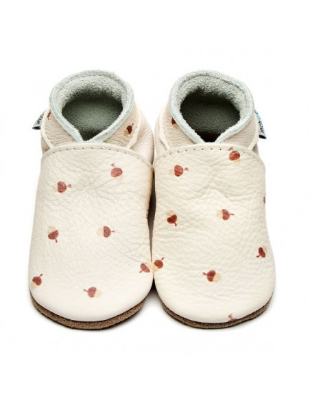 Chaussons fabriqués à partir de cuir souple avec semelle anti-déparapante en Hévéa pour faciliter l'apprentissage de la marche. Légers et flexibles aussi pour que les petits pieds puissent bouger librement sans restriction. Correspondent à la taille 22-23.