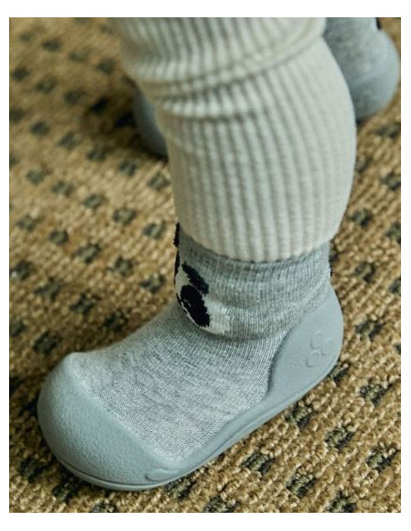 Attipas est une chaussure bébé totalement responsable et ergonomique conçue à base d'une chaussette et d'une semelle antidérapante qui s'adapte complètement au pied de bébé comme s'il s'agissait d'une seconde peau.