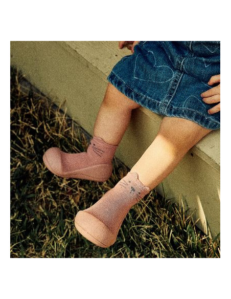 Attipas est une chaussure bébé totalement responsable et ergonomique conçue à base d'une chaussette et d'une semelle antidérapante qui s'adapte complètement au pied de bébé comme s'il s'agissait d'une seconde peau.