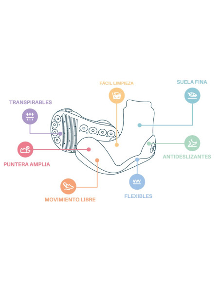 - Sûr: semelles antidérapantes et fabriquées avec des matériaux non toxiques et résistants.