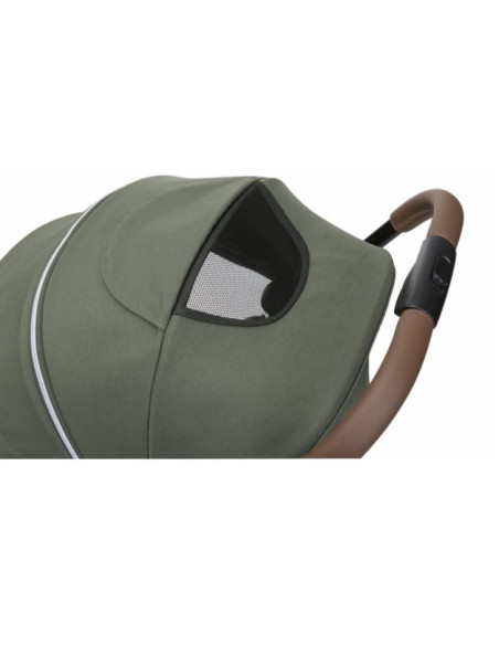 - Capote : extensible, imperméable et garantit une protection optimale grâce aux traitements UV50+. La fenêtre en filet sur la partie supérieure permet de garder le contact visuel avec le bébé.