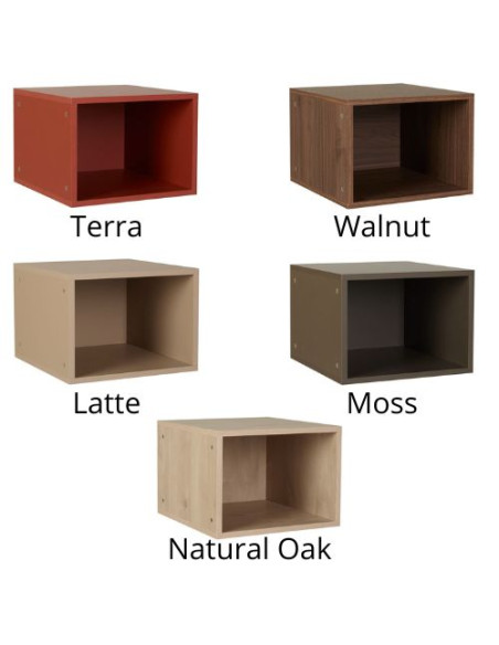 La niche est aussi disponible dans les coloris suivants : Latte, Moss, Walnut, Terra, Natural Oak.