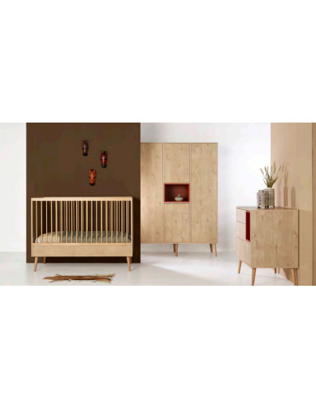 Chambre bébé 3 pcs lit 60x120cm garde-robe 3 portes - Cocoon Natural Oak