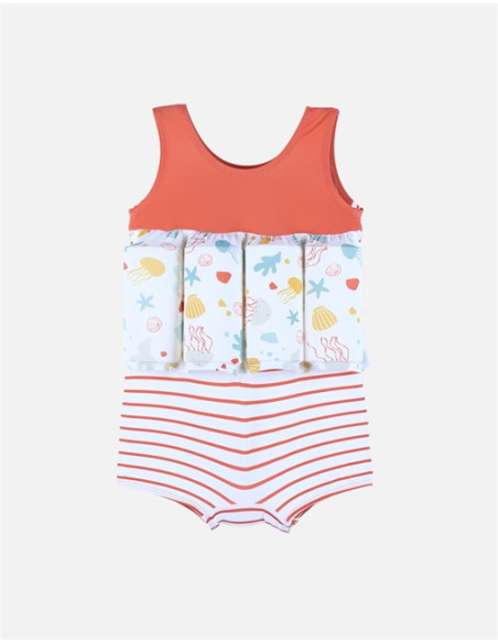 Le maillot bouée est idéal pour aider les enfants à gagner en confiance et à apprendre à nager. Fabriqué en maille traitée SPF50+, il protège la peau des rayons nocifs du soleil. Il est important de noter que le maillot bouée est un dispositif d'assistance et ne remplace pas la nécessité d'une surveillance constante et attentive par un adulte.