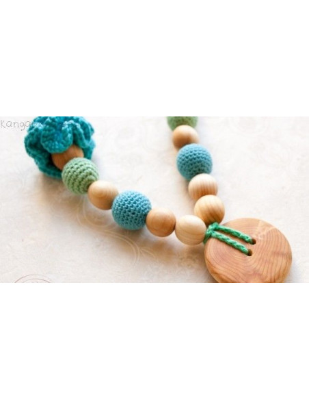 Magnifique collier d'allaitement et de portage 100% naturel en bois et perles au crochet coton.