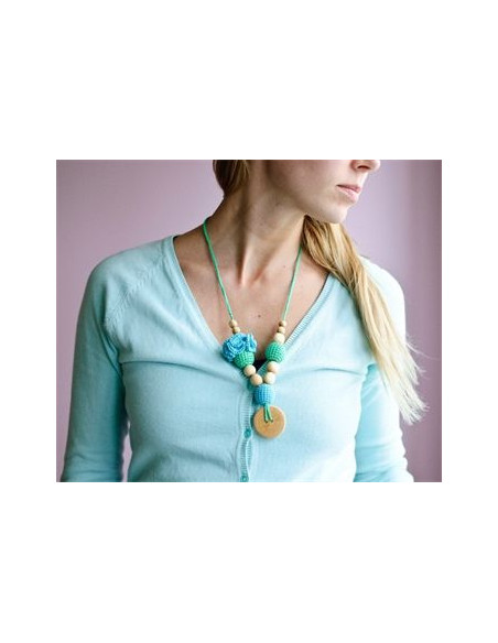 Collier d'allaitement Flower Mama in Mint & Blue / Juniper Wood