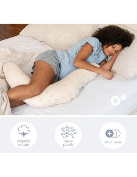 Le premier format de l'oreiller Twisty est un long coussin très douillet, parfait pendant la grossesse pour soutenir le dos, les jambes et le ventre.