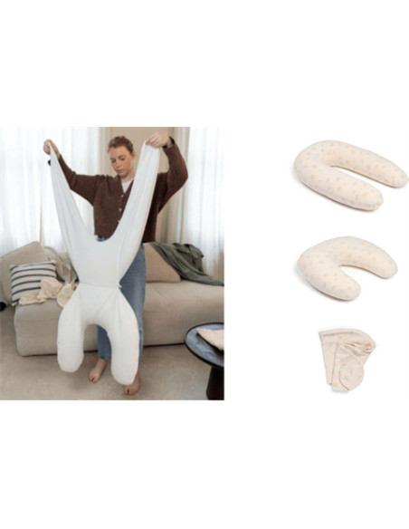 Après transformation, il devient un oreiller compact et pratique pour allaiter, donner le biberon à la bonne hauteur ou simplement apporter un confort supplémentaire.