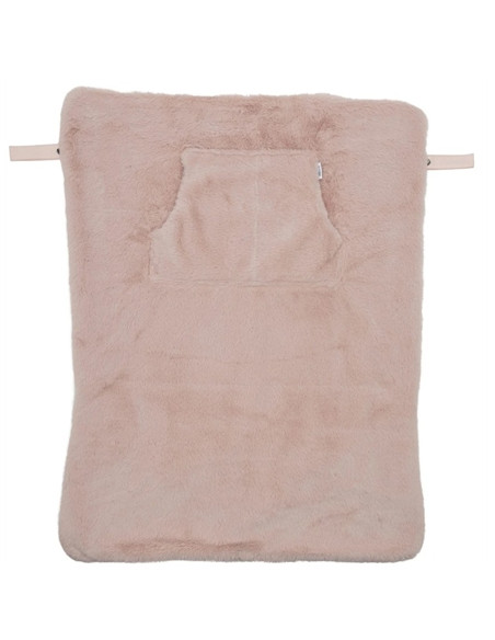 - Très stylée, elle est composée d’une face en fausse fourrure angora, et d’une face en gaze de coton.